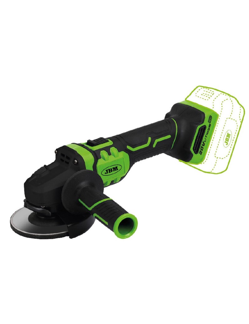 Esta amoladora electrica angular brushless ref. 60008, alimentada por baterías recargables, está disenada para realizar todo tipo de tareas de corte, pulido y lijado. Voltaje: DC-20V Velocidad sin carga: 8000 rpm Diámetro del disco: 115mm (4-1/2â) Tamaño del eje: M14 Peso: 1,49 kg Contiene: 1 mango auxiliar 1 llave de ajuste 1 cubierta protectora *Batería no incluida *Disco no incluido