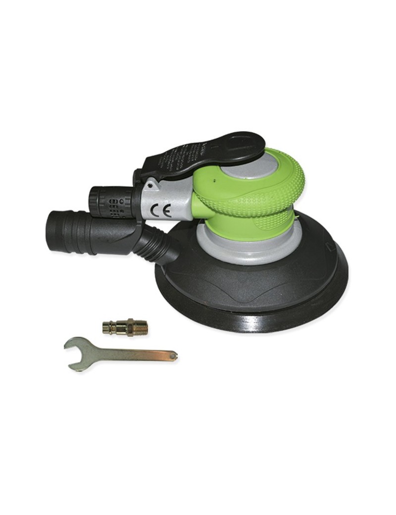 Orbita de lijado 2,5mm Cuerpo de aluminio con empuñadura engomada (diseño ergonomico) Escape trasero de 360º 10.500Rpm Presionaire 90 Psi Consum medio de aire: 84L/min Disco de Diam. 150mm Angulo de 90º Largo: 200mm Peso: 0,96kg