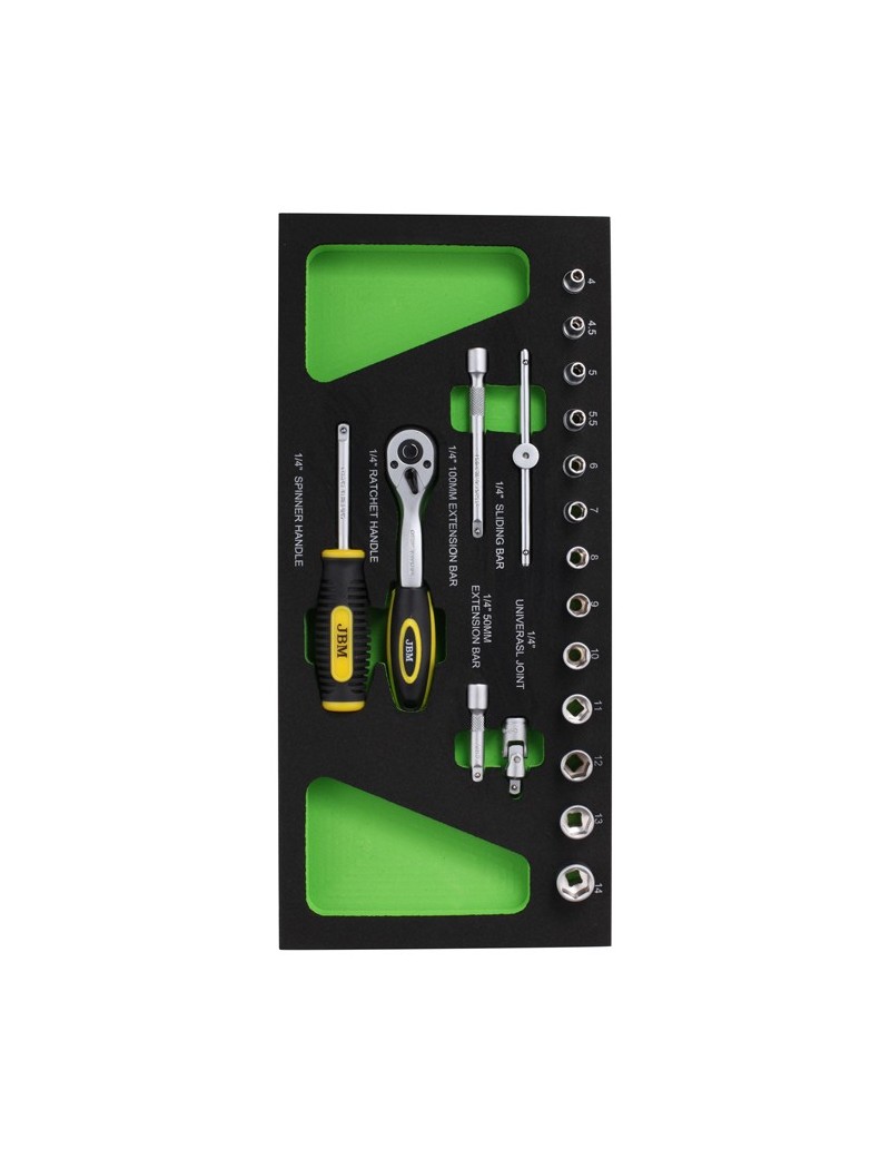 1/4" carraca universal 1/4" 250mm barra de EXTENSION 1/4" 125mm barra de EXTENSION 1/4" mango corredizo 1/4" mango destornillador 1/4" vasos 4, 4.5, 5, 5.5, 6, 7, 8, 9, 10, 11, 12, 13, 14
