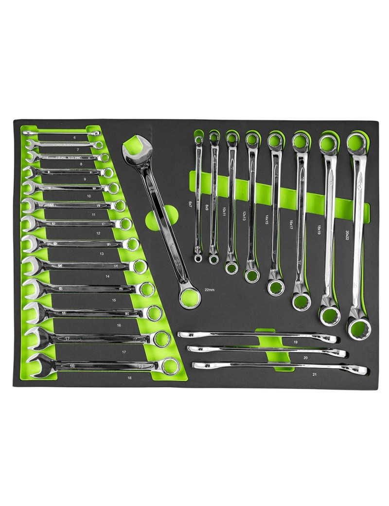 Llaves combinadas: 6, 7, 8, 9, 10, 11, 12, 13, 14, 15, 16, 17, 18, 19, 20, 21, 22mm Llaves acodadas: 6x7,8x9,10x11,12x13,14x15,16x17,18x19,20x22mm