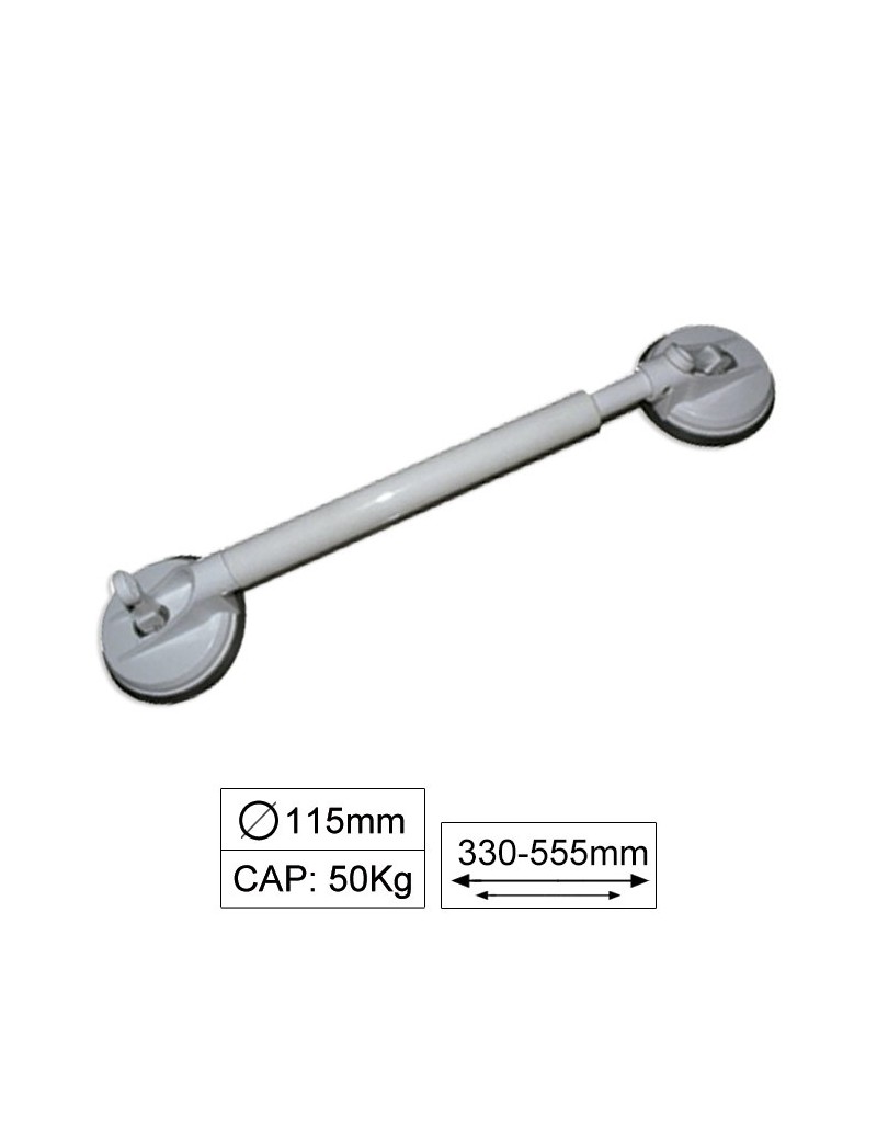 A 115mm Cap. 50kg Longitud: 330-555mm Presentacion en caja blanca.