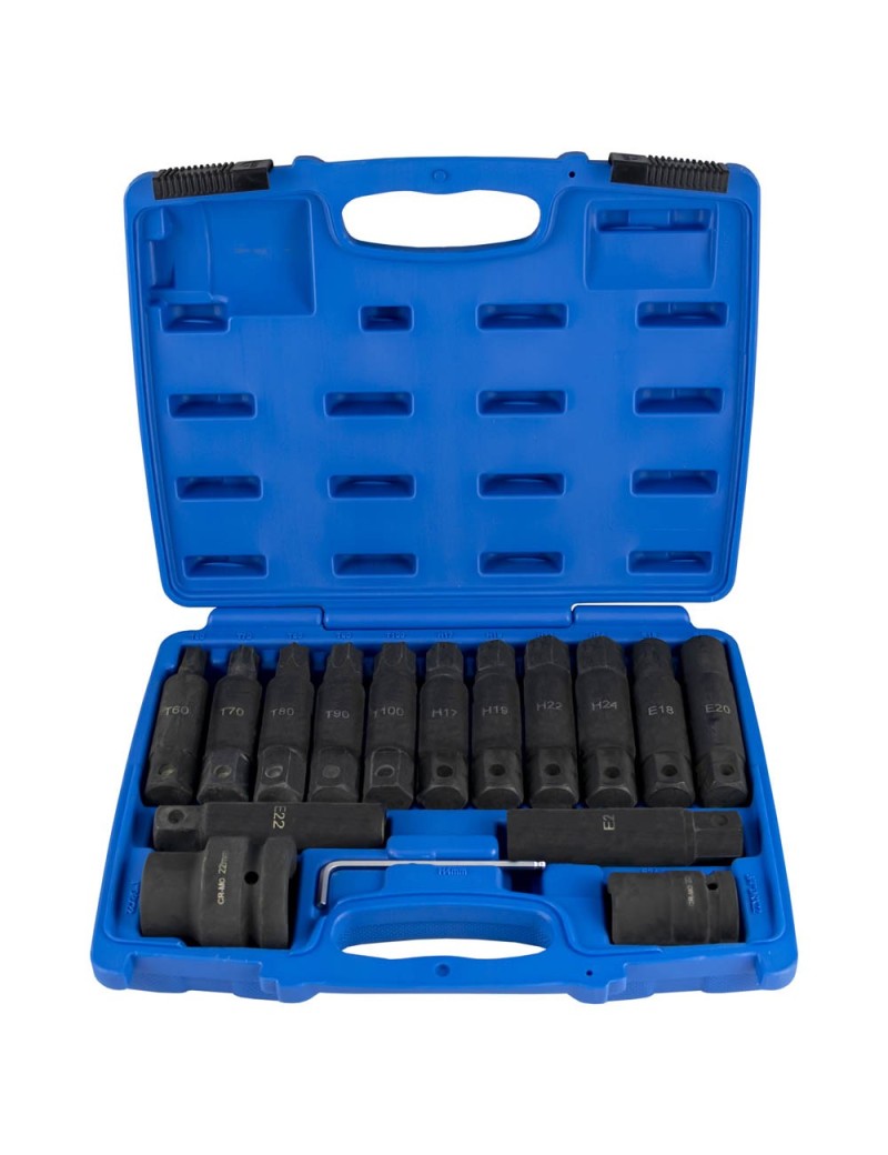 Hex.: H17, H19, H22, H24 Torx : T60, T70, T80, T90, T100 E18, E20, E22, E24 Adap. 1" Adap. 3/4" Allen 4 mm