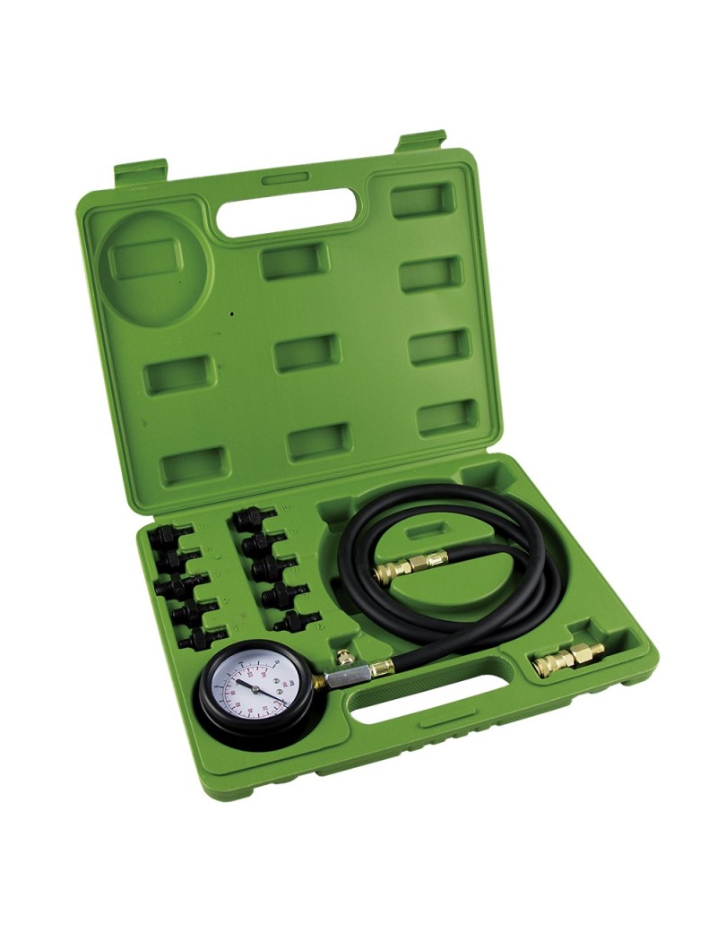 Rango de Medición: 0 -10 bar / 0-140psi ASTIL para comprobación y diagnóstico de problemas en el sistema de aceite. Adaptadores para la mayoría de vehículos del mercado incluidos. Adaptadores métricos: M10x1.0mm M12x1.5mm M14x1.5mm M16x1.5mm M18x1.5mm Adaptadores pulgada: 1/8" DIN 2999 1/8" x 27 NPT 1/4" x 18 NPT 3/8" x 20 UNF 1/2" x 20 UNF