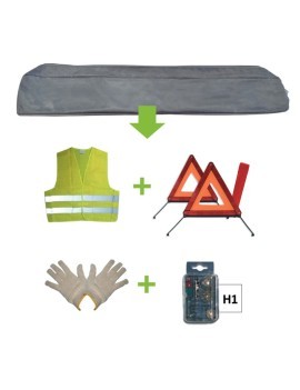 KIT EMERGENCIA BOLSA GRIS + MK H1 + CHALECO + TRIANG. + GUANTES