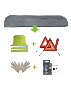 KIT EMERGENCIA BOLSA GRIS + MK H7 + CHALECO + TRIANG. + GUANTES