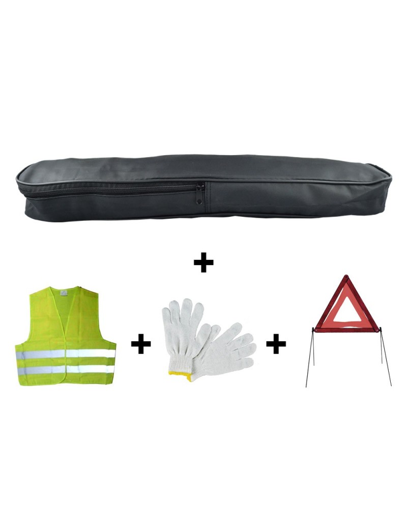 KIT EMERGENCIA BOLSA PVC+TRIANGULO+CHALECO+GUANTES
