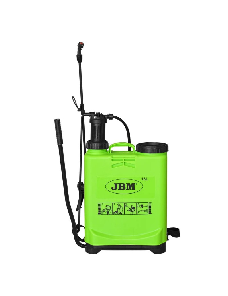 Su diseño especial para una buena adaptación a la espalda provoca que no se tenga una sensación de peso después de utilizarlo durante un periodo largo de tiempo. Soporte para colocar la lanza cuando se está transportando el pulverizador. Ergonómico: Perfecta adaptación a la espalda para evitar la sensación de pesadez cuando se utiliza durante un periodo largo de tiempo. Transpirable: Espacio entre la espalda del operario y el tanque para facilitar la transpiración y evaporacion del sudor. Capacidad de la cámara de aire: 0,9L Presión máxima en la cámara de aire: 0,2-0,3Mpa Capacidad del depósito: 16L Longitud de la manguera: 120cm Longitud de lanza: 60cm Medidas de las correas: 100x3,5x2cm