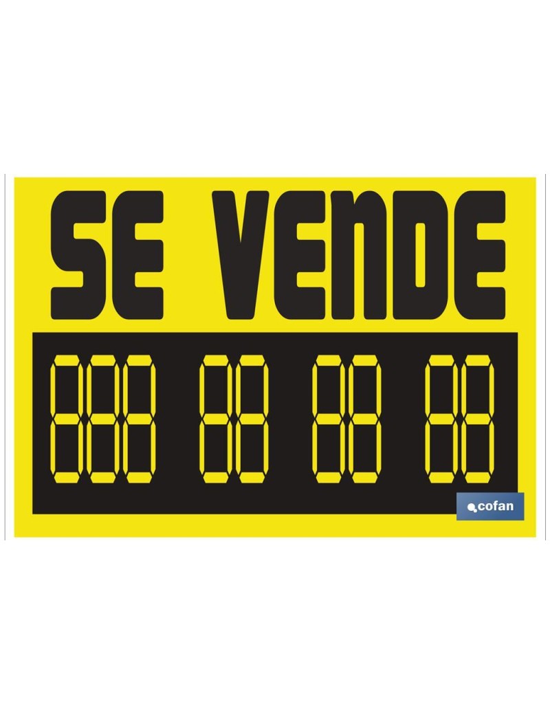 Señal informativa de poliestireno con texto se vende. Tamaño a elegir.