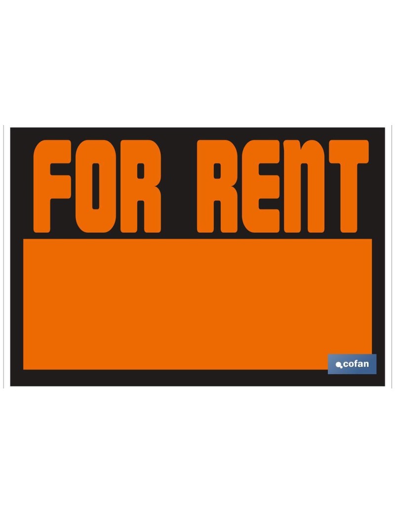 Señal informativa de poliestireno con texto for rent. Tamaño a elegir.