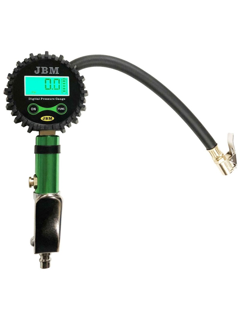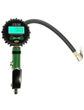 manometro digital. Escala: 0-200Psi, 0-14Bar, 0-1400Kpa, 0-14Kgf / cm². Pantalla verde retroiluminada con temporizador automático apagado. Pantalla numérica grande con unidades de Presionseleccionables por el usuario. Pantalla de despertador automático con sensor de Presion. Baterías: 2 pilas AAA (incluidas). Indicador de nivel de batería. Protector de goma. Boton de purga de aire para un ajuste preciso de la Presion. Manguera resistente a la torcedura de 300 mm. Pinza de aire de laton. Adaptador estándar industrial de la UE.
