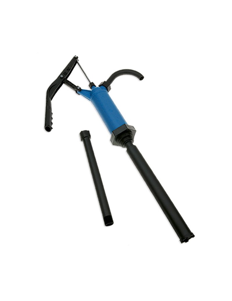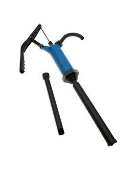 Para bidones de 25, 50 y 200L. 350ml por bombeo. Cuerpo y pistón de polipropileno. Mango de Plastico ABS. Aplicaciones: Alcoholes, aceites, lubricantes, gasolina, diesel, queroseno, etc. Valido para urea AUS32 . Conducto de succión: Largo mínimo: 320mm Largo maximo: 900mm