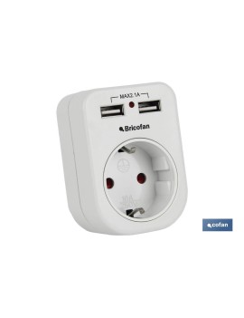 ADAPTADOR ENCHUFE 1 TOMA FRONTAL+2 USB (PACK: 1 UDS)