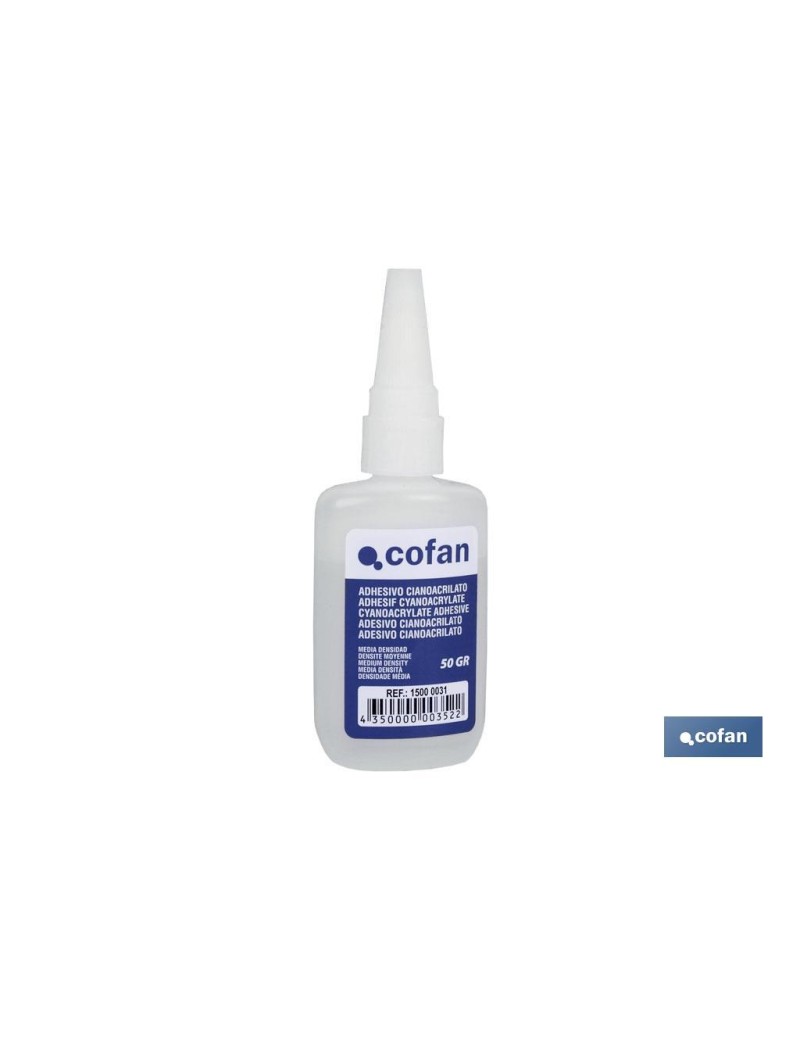 Pegamento adhesivo instantáneo cianoacrilato transparente viscosidad media 50 g. Pegamento instantáneo 50 g. Este adhesivo está disponible en alta densidad y media densidad, es especial para madera. El envase que tiene es de 50 gramos.