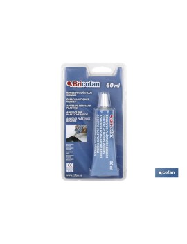 Adhesivo para plásticos rígidos apto para tuberías de PVC, juguetes, maquetas, placas de poliéster o bricolaje. Producto de alta calidad conforme a las normas europeas. Su capacidad de relleno permite que no haya fugas. Es transparente y el envase contiene 60 ml. Es un adhesivo muy polivalente ya que pega todo tipo de plásticos en pocos segundos sin ninguna excepción. Fuerza instantánea multimateriales y extra-fuerte.