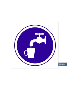 Señal de obligación con imagen agua potable. Material y tamaño a elegir.