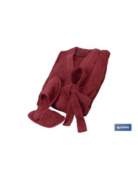 Albornoz de baño de manga larga y cinturón para cierre. Disponible color burdeos. Está compuesto por algodón 100 %, rizo con gran capacidad de absorción y gramaje de 500 g/m2. Tallas disponibles: S, M, L, XL, XXL.