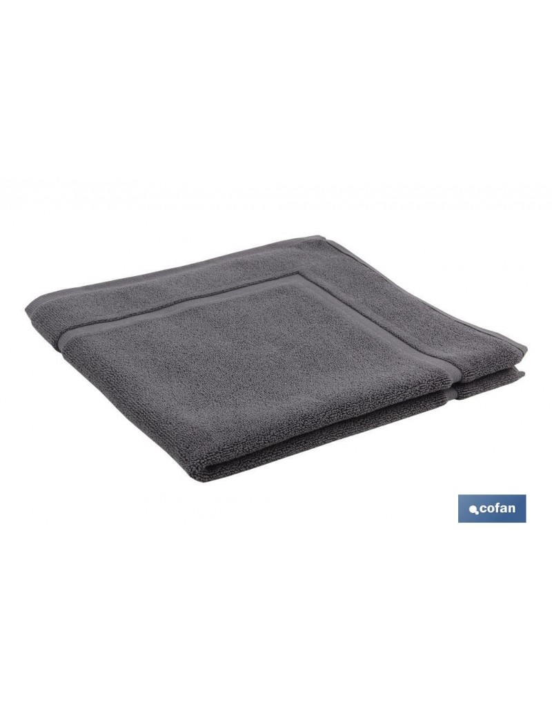 Alfombra de baño en color gris antracita. Modelo Piedra. Disponibles también las toallas de ducha, de baño, lavabo y tocador. Son muy suaves al tacto y con gran capacidad de absorción. Las medidas son 60 x 60 cm. De alta durabilidad tras continuos lavados. Muy buena calidad y resistencia. Fabricada en 100 % de algodón y con un gramaje de 500 g/m2.