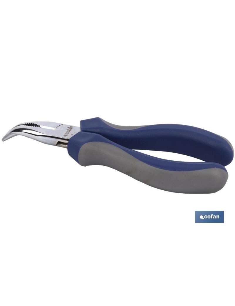 Alicates de punta curva con muelle interior provistos de corte, agarre fácil y apertura automática de la herramienta. Medidas en 160 y 200mm de longitud