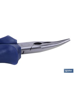 Alicates de punta curva de alto rendimiento provisto de corte, robustos y confeccionados en acero de doble temple con una extrema dureza para el agarre y el corte. Medidas en 160 y 200mm