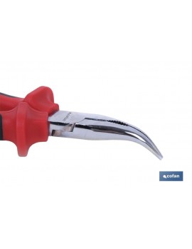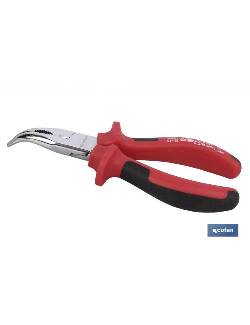 Alicates de punta curva 1000 V aislados, provisto de corte en acero cromo vanadio con tratamiento especial resistente al calor. Medidas en 160 y 200mm
