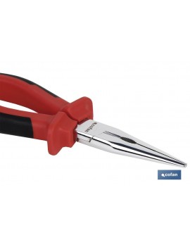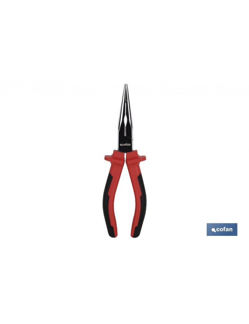Alicates de punta 1000 V aislados, provisto de corte en acero cromo vanadio con tratamiento especial resistente al calor. Medidas en 160 y 200mm
