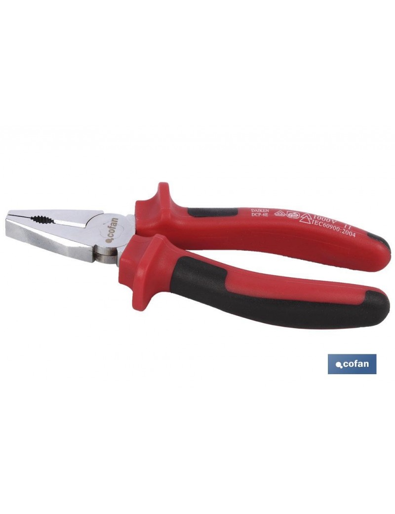 Alicates universal 1000 V aislados, provisto de corte en acero cromo vanadio con tratamiento especial resistente al calor. Medidas en 160, 180 y 200mm