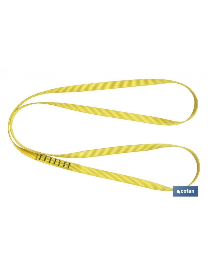 Anilla de anclaje con cinta de poliéster de 1,20 m de longitud cosida. Resistencia a la rotura con más de 18 kN.