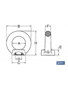 Anilla de elevación con capacidad de carga de 100 a 3.500 kg. Tornillo de cáncamo reforzado rosca hembra DIN-582. Desde M-6 hasta M-30.