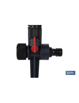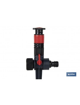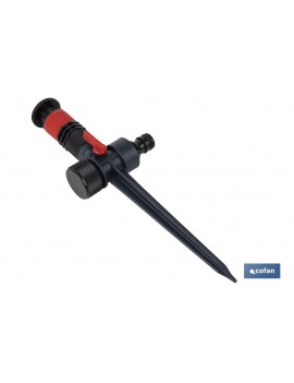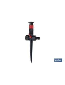 Aspersor sectorial de estaca. Direccionable a 360° para uso en jardín y agricultura. Sistema de riego de jardín. Gradúe el ángulo de riego en el propio aspersor con su innovador sistema regulable. Válvula de cierre en el propio aspersor. Cobertura de riego de hasta 78 m2.