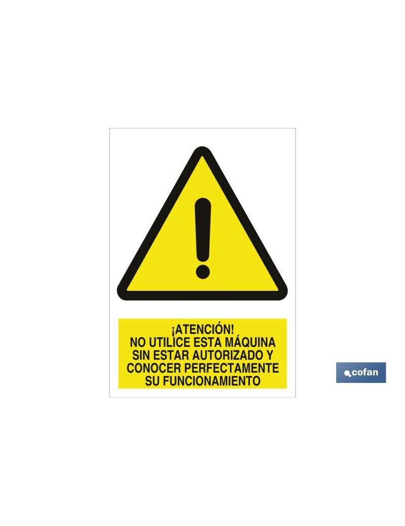 Señal de advertencia atención no utilice esta máquina sin estar autorizado y conocer perfectamente su funcionamiento.