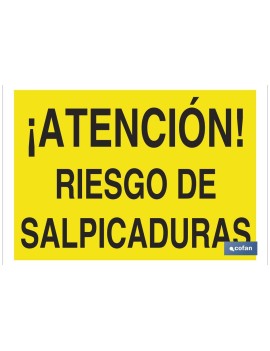 Señal de advertencia de peligro con texto riesgo de salpicaduras. Tamaño y material a elegir.