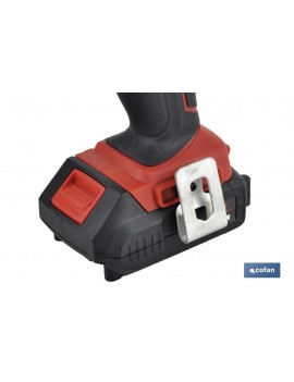 Atornillador percutor de impacto 1/4 de batería de Litio Li-ion. Consta de control variable de velocidad 0-2000 rpm y selector de giro izquierda/derecha. Con 3 luces de trabajo Led y clip de metal para ajuste en cinturón. Incluye maletín con accesorios (4 pcs.) más cargador de batería 18V.