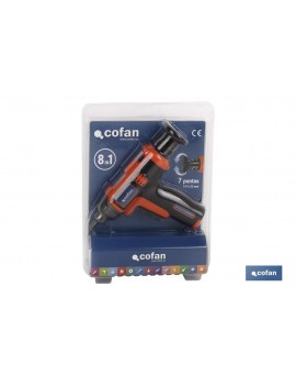 Atornillador eléctrico multipuntas con batería de litio que conserva la carga hasta 18 meses, con cable de carga magnético USB y 7 puntas. Nº REI-RAEE de Cofan La Mancha 7038.