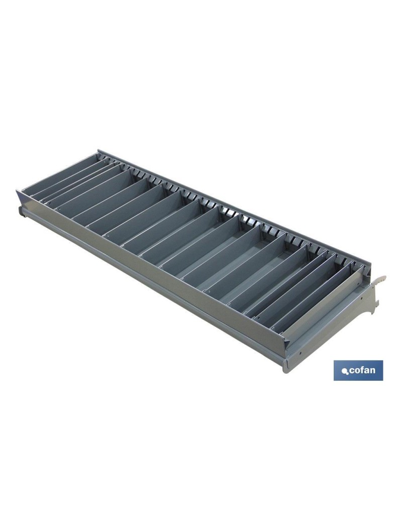 Bandeja Angular Expositor con 18 separadores. 1000 x 300 mm