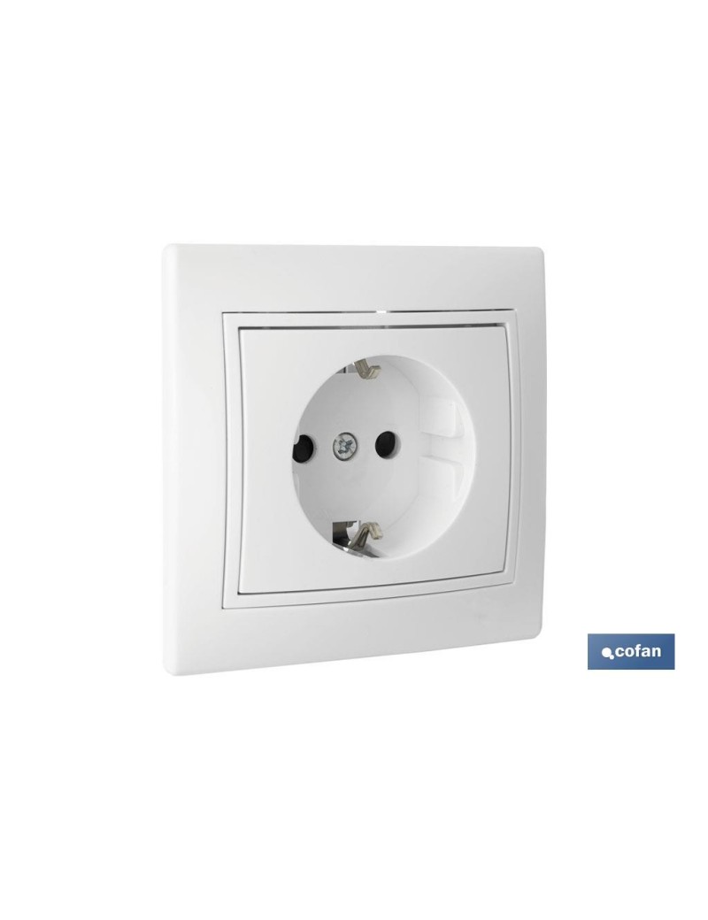 Base enchufe bipolar de Empotrar en color blanco compatible con todas las cajas de conexiones. Características 16A 250V.