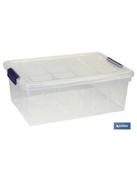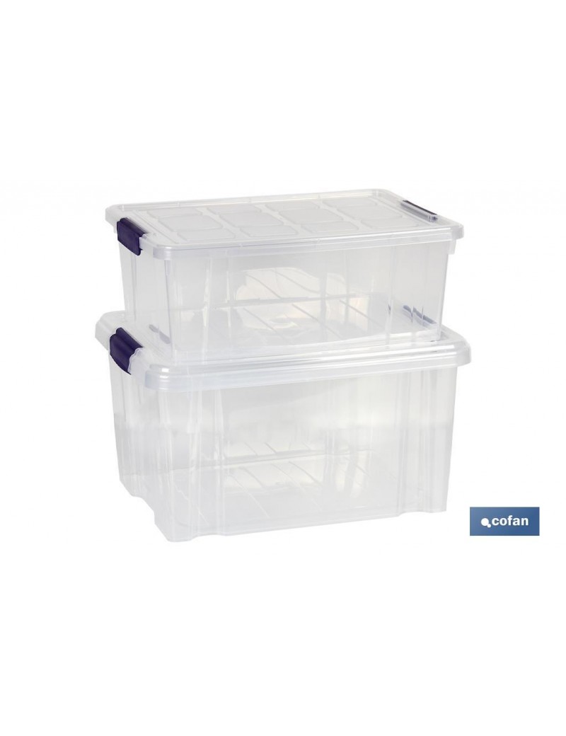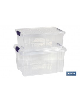Baúles de almacenamiento fabricados en polipropileno con tapas de cierre a presión que ayuda a la conservación y cuidado de los artículos que se guarden.Su color es transparente, ideal para poder ver su contenido y acceder al producto rápidamente. Son muy cómodos y apilables, perfectos para ocupar el mínimo espacio en tu hogar.