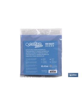 Bayeta multiusos Microplus, disponible en color azul. Las medidas son 40 x 40 centímetros. Es ideal para limpiar superficies delicadas como encimeras, cristales, pantallas o tapicería. Tiene un gran poder absorbente y no deja pelusa. Su mayor eficacia puedes conseguirla humedeciéndola ligeramente.