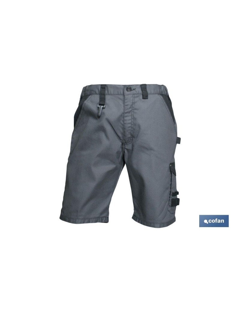 Bermudas de trabajo modelo Poulsen. Su composición: 65 % algodón y 35 % poliéster - 280 g/m2. Colores: gris/negro y beis/negro. Talla disponible desde la 38 hasta la 64. Cuenta con una cremallera y un botón como cierre central y también con varios bolsillos multiusos para poder guardar cómodamente cualquier herramienta u objeto.
