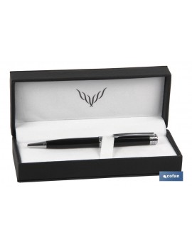 Bolígrafo Mod.Normandia diseño de alta calidad en acero inoxidable que proporciona un contacto ligero al escribir.Punta rodante mediana de tinta azul. Presentado en un estuche estampado de piel negra