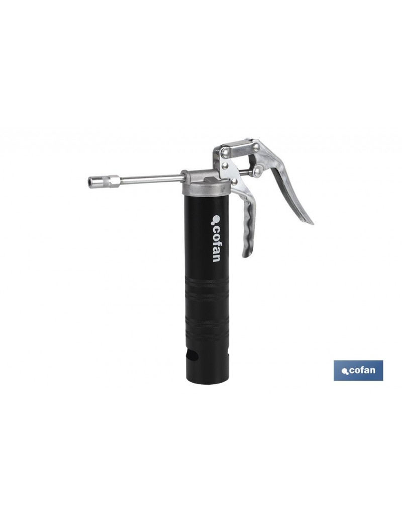Pistola de engrase vertical diseñada para el uso de alta presión rápida y sin esfuerzo. Ideal para el uso con cartuchos de grasa en 400 gr. con rosca grande. Este sistema de cartuchos permite el cambio rápido de varios tipos de grasa y no produce burbujas de aire, por lo cual no es necesario ser purgada. Presión de salida 5000PSI/345BAR y 0.5g por inpulso. Equipada con boquilla de 4 garras. Adaptable al sistema LUBE-SHUTTLE.