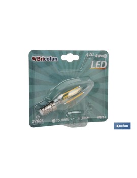 BOMBILLA LED VELA FILAMENTO E14 4W 470LM 2700K (PACK: 1 UDS)