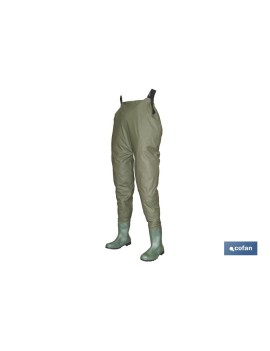 Botas de agua con peto de vadeador impermeable. Fabricadas en PVC y con junta termosellada. Tallas disponibles desde la 39 hasta la 47. Son ideales para cualquier época del año, y sector industrial, de contrucción o agrícola. Son de muy buena calidad, ofrenciendo comodidad y tranquilidad a la par que resistentes. En color verde.
