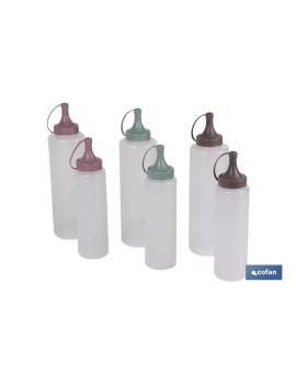 Tenga a mano todo aquello que necesite con las botellas/biberones modelo Albahaca en color Verde Agua. Fabricados en polipropileno transparente para poder ver su contenido y poder identificar con facilidad sus salsas, aceites y líquidos en general. Aptos para estar en contacto con los alimentos. Prácticos y duraderos. Fabricados en UE. Medidas disponibles: - capacidad 250 ml, 5 x 20 cm - capacidad 500 ml, 6 x23 cm