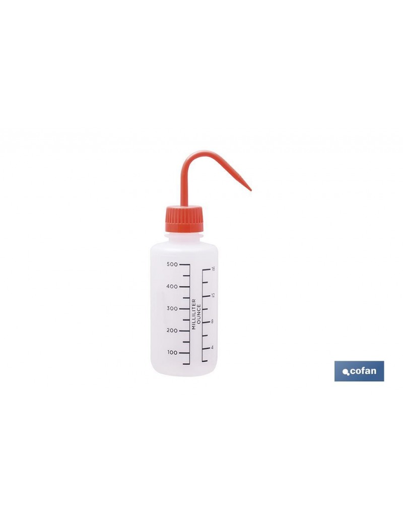 Botella de compresión con una capacidad de 500 mililitros. Fabricada en polietileno de baja densidad. Su diseño facilita la apertura y la limpieza. Esta botella es reutilizable y puede rellenarse repetidamente. El vaciado del líquido del interior se realiza simplemente apretando la botella. Irrompible, liviana y resistente a la corrosión. Para rellenar agua, líquidos con base acuosa, alcohol, jabón, aceites ligeros y pesados, entre otros.