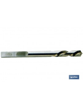 Broca  de centraje alojada en el husillo de las coronas bimetálicas para marcar la pieza a agujerear, y que no se deslice la broca por la pieza a trabajar.