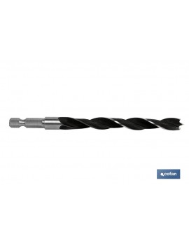 Broca de tres puntas para madera, con mango hexagonal de 1/4”. Fabricada en cromo vanadio. Aplicaciones: Maderas, maderas blandas y aglomerados.