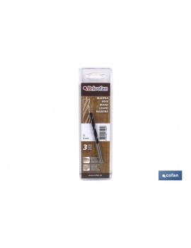 Brocas Bricofan MADERA (Tres Puntas) para maderas duras y medias, envasadas en Blíster termoconformado en envase indivudual.