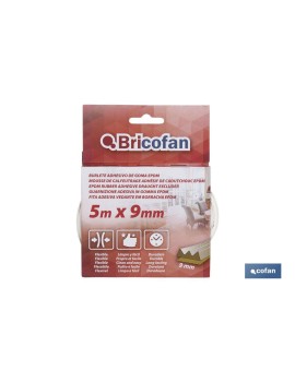 Burlete adhesivo aislante de goma EPDM. Medidas: 5 m longitud X 9 mm grosor. Flexible, limpio, fácil y duradero. Aisla ventanas, puertas, claraboyas, etc. Compensa holguras en marcos entre 3 y 5 mm. Aplicación pegando un ángulo del burlete y ejerciendo presión para mejor adherencia sobre la superficie. Disponible en pack de 6 unidades o 1 unidad. Colores: Blanco y Marrón.