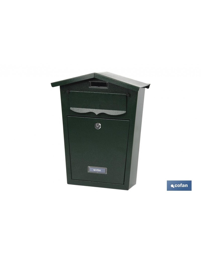 Buzón exterior correo Mod.Garden, medidas 360x290x105 mm. Colores blanco, verde, negro. Incluye kit de montaje y 2 llaves. Fabricado en acero galvanizado.