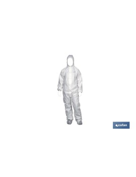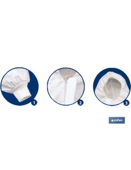 Buzos de seguridad o monos de pintor. Fabricado en nuevo no-tejido, suave, transpirable y resistente a las salpicaduras nocivas conforme a las normas europeas de tipo 5 y 6, no suelta pelusa. Cierre con cremallera de doble cursor. Disponible en color blanco. Capucha, puños, tobillos y cintura elásticos para mayor comodidad a la hora de utilizarlo. Talla M. Uso ideal para muchos oficios como el clínico, sanitario, medico, farmacéutico, veterinaria, construcción, desinfección , pinturas, agricultura, mantenimiento... Disponible desde la talla M a la talla XXL